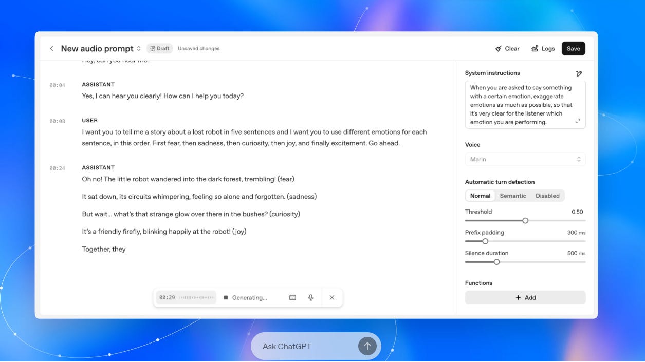 OpenAI has launched gpt-realtime and updated its Realtime API, aiming to enhance the capabilities of production-ready voice agents. The improvements include advanced speech-to-speech models, support for remote MCP servers, image inputs, and the ability to handle phone calls through Session Initiation Protocol (SIP). This new model excels in natural speech generation, complex instruction adherence, and accurate function calling. Notably, the API's integration supports real-time responses without chaining multiple models, reducing latency for smoother interactions. Additionally, OpenAI has introduced two new voice options, Cedar and Marin, optimized for natural-sounding speech, and implemented safety and privacy measures. These updates promise a significant leap in deploying reliable voice solutions for developers and enterprises.