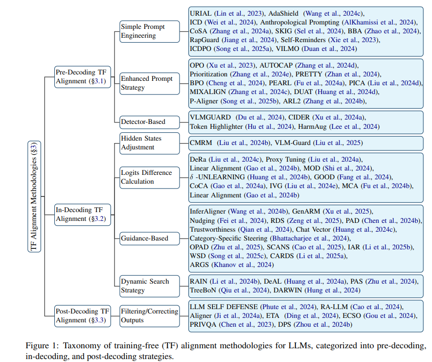 A recent survey has examined training-free alignment methods for large language models (LLMs), proposing them as a promising alternative to traditional fine-tuning techniques. The study categorizes these methods into pre-decoding, in-decoding, and post-decoding stages, emphasizing their ability to align LLM outputs with human values and ethical standards without extensive retraining. This approach presents a significant advantage in scenarios where model accessibility or computational resources are limited, making it applicable to both open-source and closed-source environments. The survey also highlights the challenges and future directions in advancing safer and more reliable LLMs.