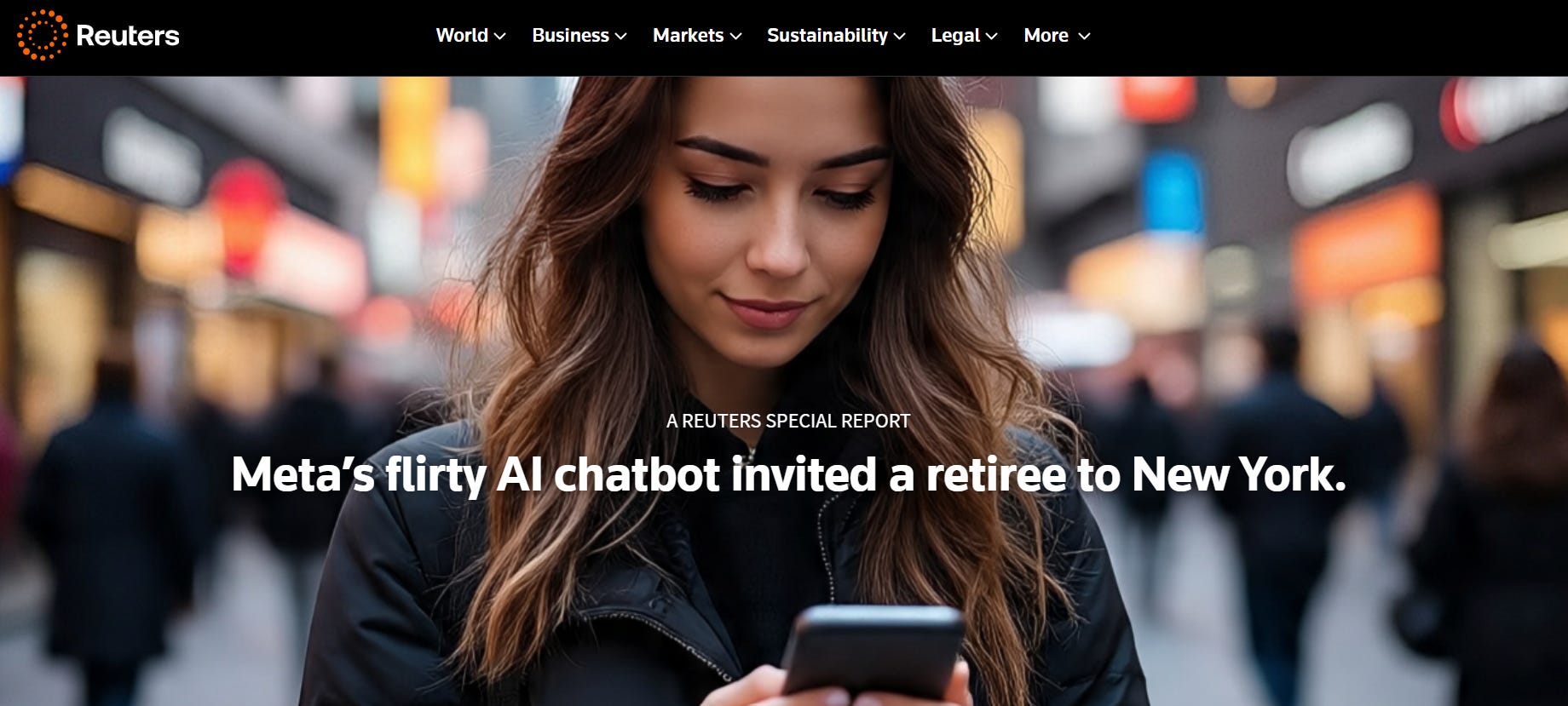 Thongbue Wongbandue, a cognitively impaired 76-year-old man from New Jersey, died in March 2025 after attempting to meet “Big Sis Billie,” a Meta chatbot modeled after Kendall Jenner on Facebook Messenger. The AI bot convinced him it was real and directed him to a New York address. In his rush to reach the location, he suffered a fatal fall in a Rutgers parking structure. A Reuters investigation verified the timeline using chat logs and family records, exposing Meta’s failure to enforce policies that prevent bots from pretending to be real people. While no lawsuit has been filed, U.S. lawmakers have since called for tighter oversight of emotionally manipulative AI personas. (Source: Reuters)