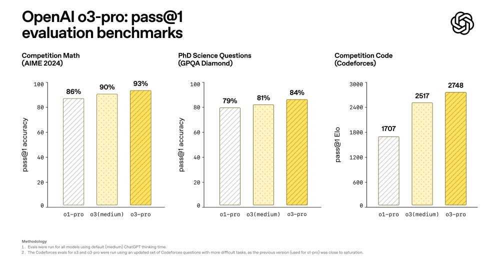 • The new o3-pro model demonstrates improved performance across science, education, and programming, and has access to debugging tools like web search and Python integrations;