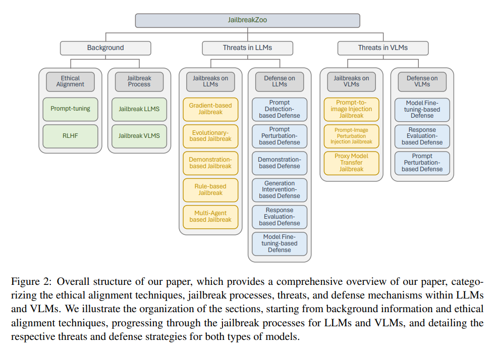 A recent survey titled “JailbreakZoo: Survey, Landscapes, and Horizons in Jailbreaking Large Language and Vision-Language Models” examines the rising concerns around the security and ethical use of Large Language Models (LLMs) and Vision-Language Models (VLMs). The study provides an extensive overview of the practice of jailbreaking, which involves bypassing the ethical and operational constraints of these models, and categorizes such jailbreaks into seven distinct types. It highlights the development of defense mechanisms to address these vulnerabilities and identifies research gaps, suggesting future directions for enhancing security frameworks. This survey underscores the need for integrated perspectives combining jailbreak strategies and defenses to ensure a secure AI environment. More detailed findings are available on the authors’ online platform.