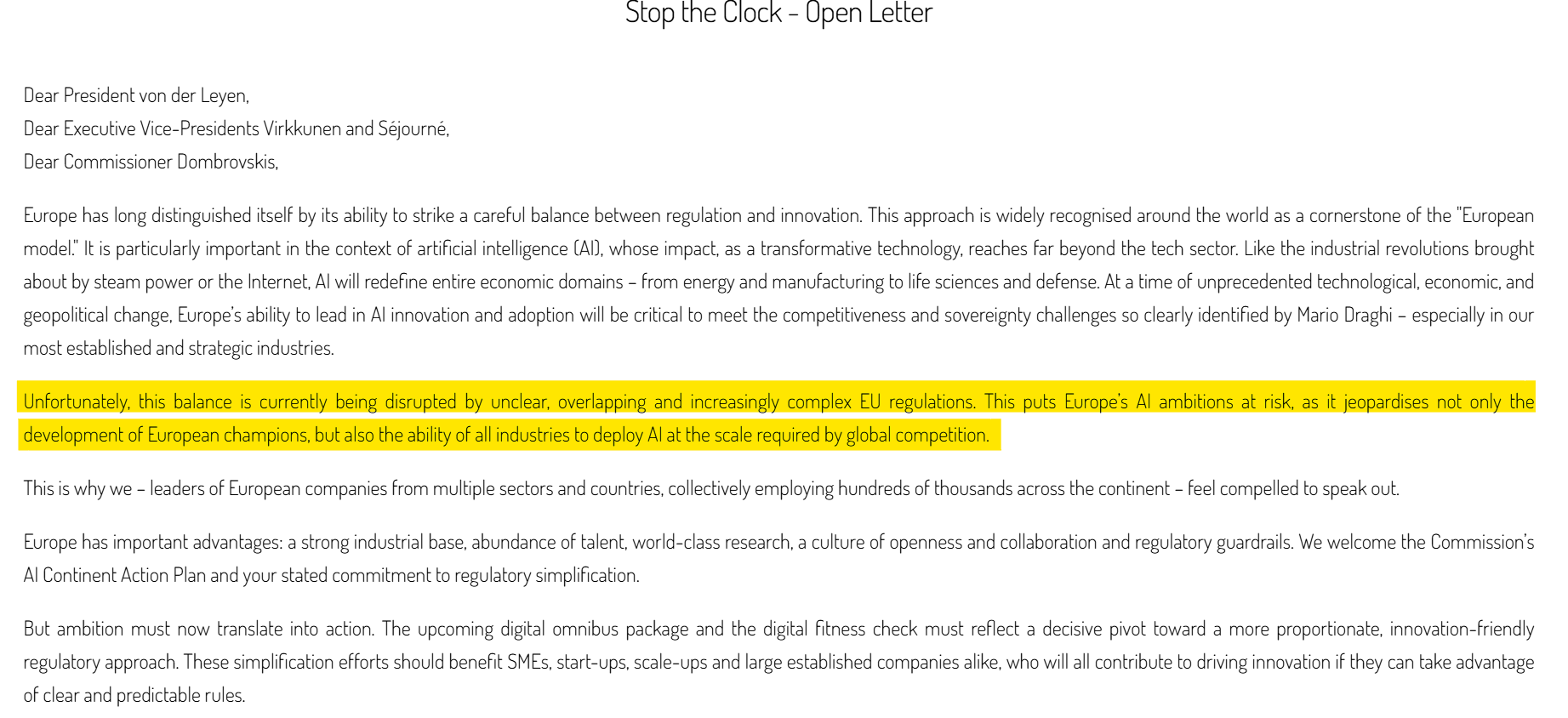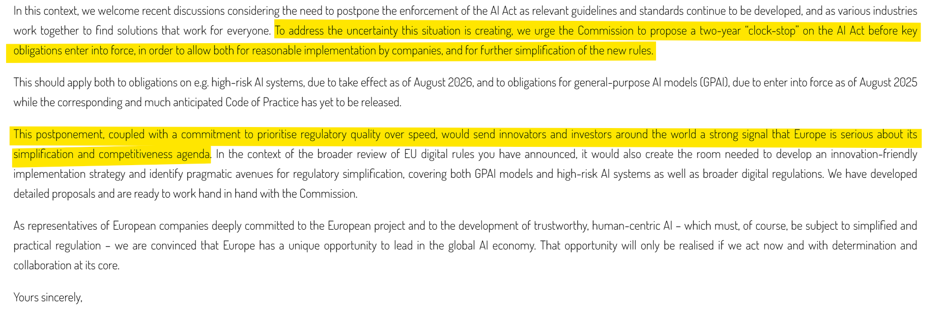 This move follows intense lobbying from Big Tech (Meta, Apple, Google), pressure from the U.S. government (including reported threats of trade retaliation from the Trump administration), and a July 2025 open letter from CEOs of major European firms like Airbus, Mercedes, and BNP Paribas demanding delays. EU industry leaders argue the Act’s complexity could scare off investment and hamper innovation. However, civil society groups and MEPs warn that postponing enforcement could jeopardize public safety, erode trust, and fracture the EU’s global leadership in tech regulation.