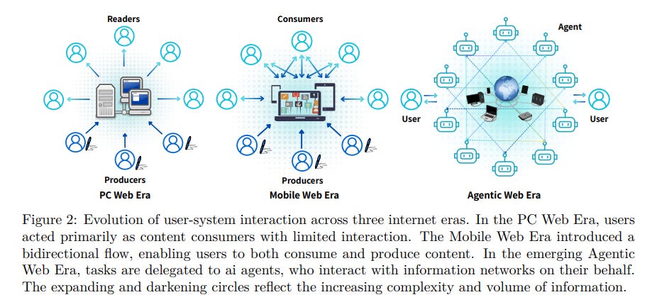 • The Agentic Web represents a significant transformation in internet functionality, enabling AI agents to autonomously handle complex tasks through machine-to-machine interaction, reducing user engagement in routine digital activities;