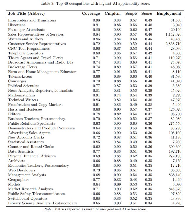 Study by Microsoft Evaluates top 40 & bottom 40 jobs from AI Applicability Perspective