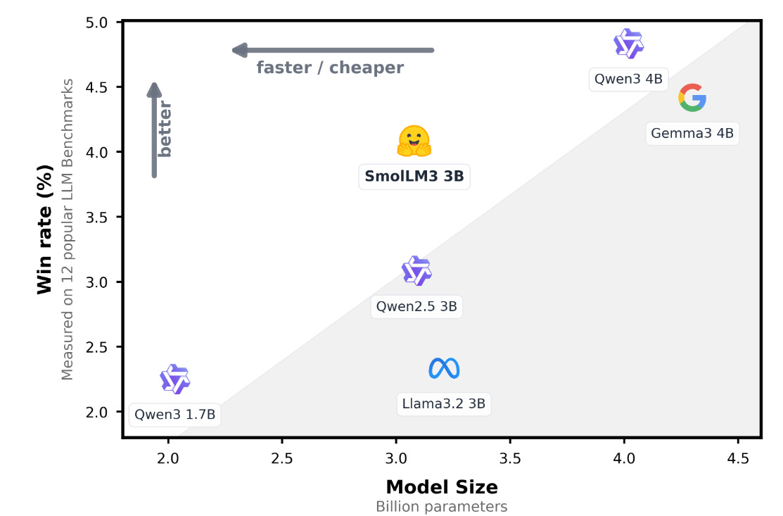 • Hugging Face's SmolLM3, a 3B parameter model, excels in multilingual capabilities and long-context reasoning, surpassing peers like Llama-3.2-3B and Qwen2.5-3B