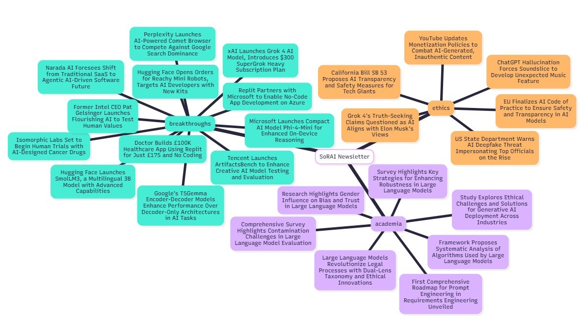 • Perplexity launched Comet, an AI-powered web browser, aiming to rival Google Search by integrating AI-generated summaries of search results as its default feature