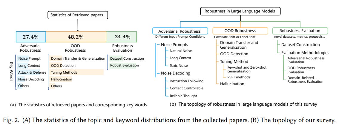 • A recent survey on Large Language Models (LLMs) focuses on evaluating and improving their robustness in diverse applications, addressing the expanding role of LLMs in various sectors