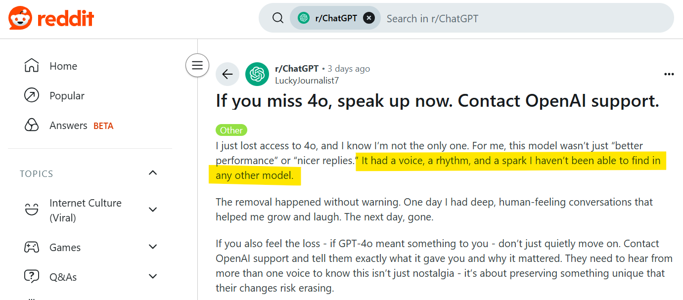 Canceled Subscriptions and Calls to Bring Back GPT-4o
