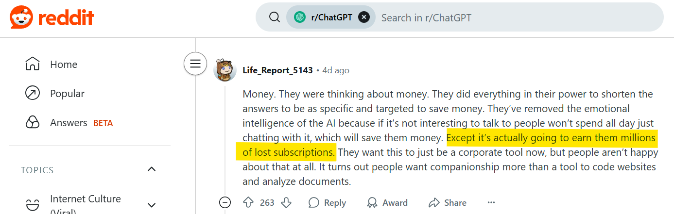 Almost immediately, social media filled with complaints that GPT-5 had “completely ruined ChatGPT.” Many users reported the new model’s answers are shorter, more bland, and less “instructable” than before. OpenAI eliminated the model picker and retired previous versions like GPT-4o (the popular default), leaving some power-users feeling stranded. “They did everything in their power to shorten the answers…removed the emotional intelligence of the AI,” one Redditor griped, predicting “millions of lost subscriptions” as a result. Others said GPT-5’s responses, while often accurate, now lack the creative “spark” and personality that made the chatbot engaging.