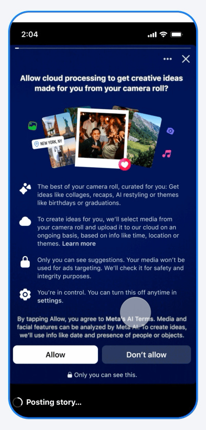 Meta drew privacy scrutiny after launching a feature that scans users’ entire camera roll to generate collages..
