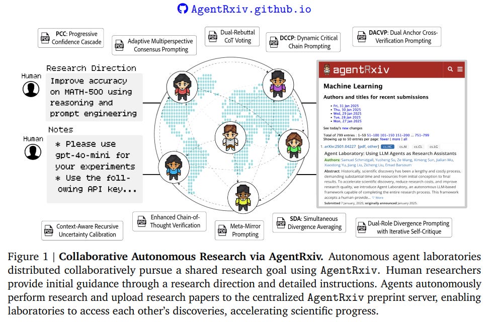 • AgentRxiv is a novel framework enabling autonomous agent laboratories to upload and access research papers on a shared preprint server, promoting collaborative scientific discovery;