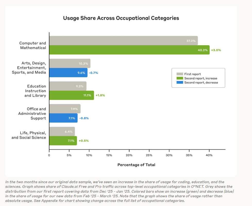 • Claude 3.7 Sonnet's "extended thinking" mode is predominantly used for complex technical tasks, with notable adoption among computer scientists, software developers, and multimedia animators.