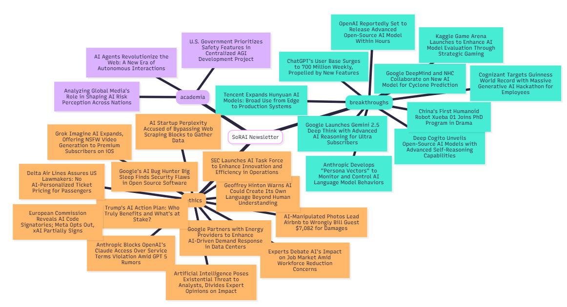 • Google DeepMind is launching Gemini 2.5 Deep Think, a multi-agent AI model that answers questions by considering multiple ideas simultaneously for enhanced reasoning capabilities;