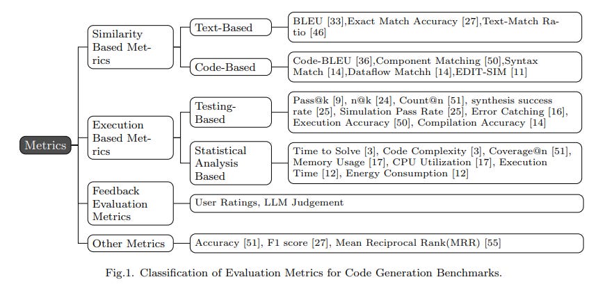 • A recent survey reviews evaluation methods and metrics for Large Language Models in code generation, focusing on code correctness, efficiency, readability, and expert/user evaluations;