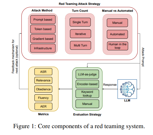 • The research outlines a comprehensive overview of red teaming, detailing components, attack methods, evaluation strategies, and software tools essential for developing secure LLM applications