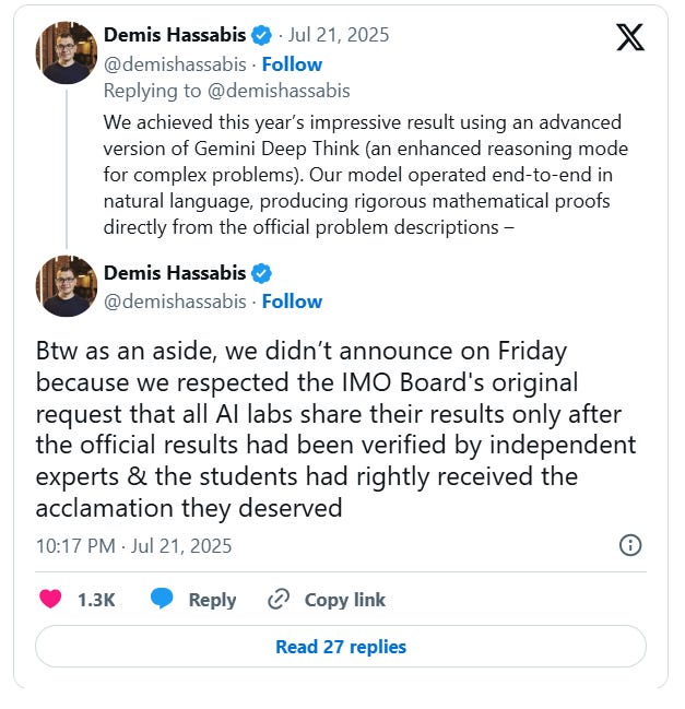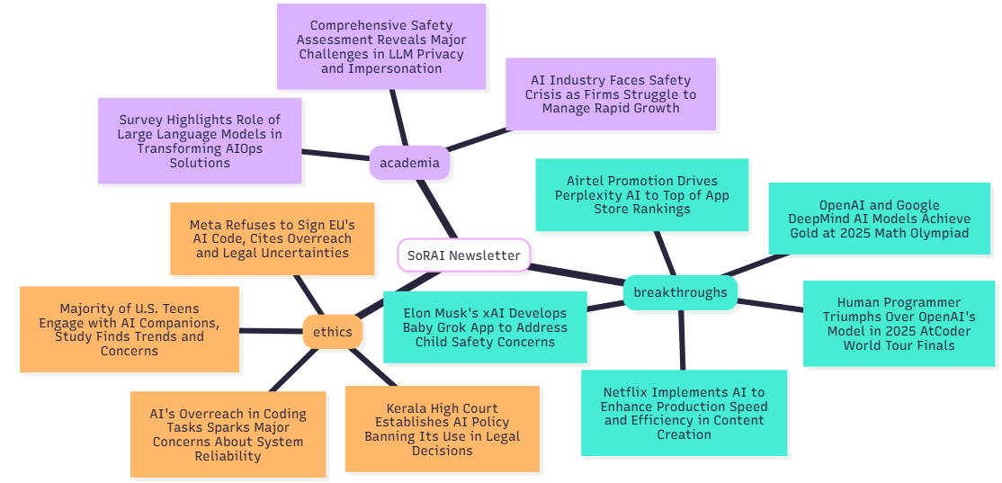 • OpenAI and Google DeepMind's AI models achieved gold-medal scores in the 2025 International Math Olympiad, showcasing rapid advancements in AI's capability to tackle high-level math problems;