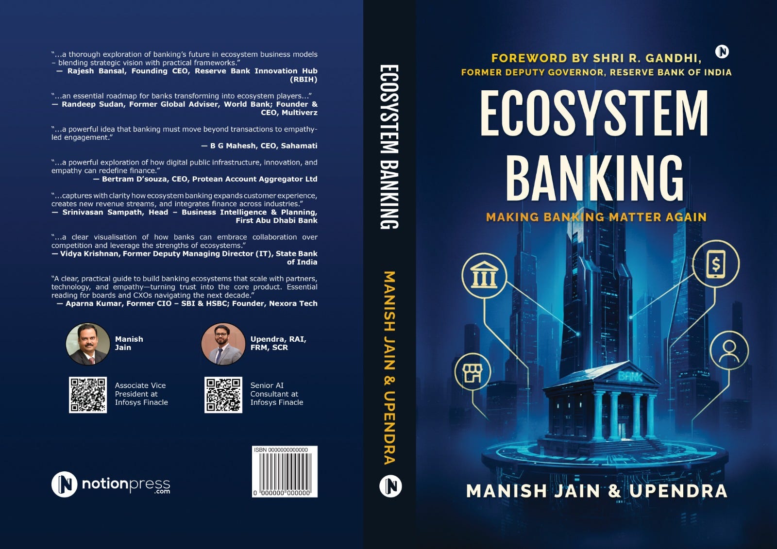 Ecosystem Banking is a timely new book that decodes how banks can move beyond linear product thinking to build collaborative, API-driven, value-creating ecosystems. It provides practitioners with a practical playbook, combining frameworks, case studies, and execution pathways, to help banks transition from traditional service providers to ecosystem orchestrators. Packed with real-world frameworks, case studies, and execution tools, the book has already earned praise from industry leaders as a must-read for CXOs. Co-authored by Manish Jain and Upendra, RAI, FRM, SCR from Infosys, it blends deep banking expertise with future-ready AI and platform strategy insights.