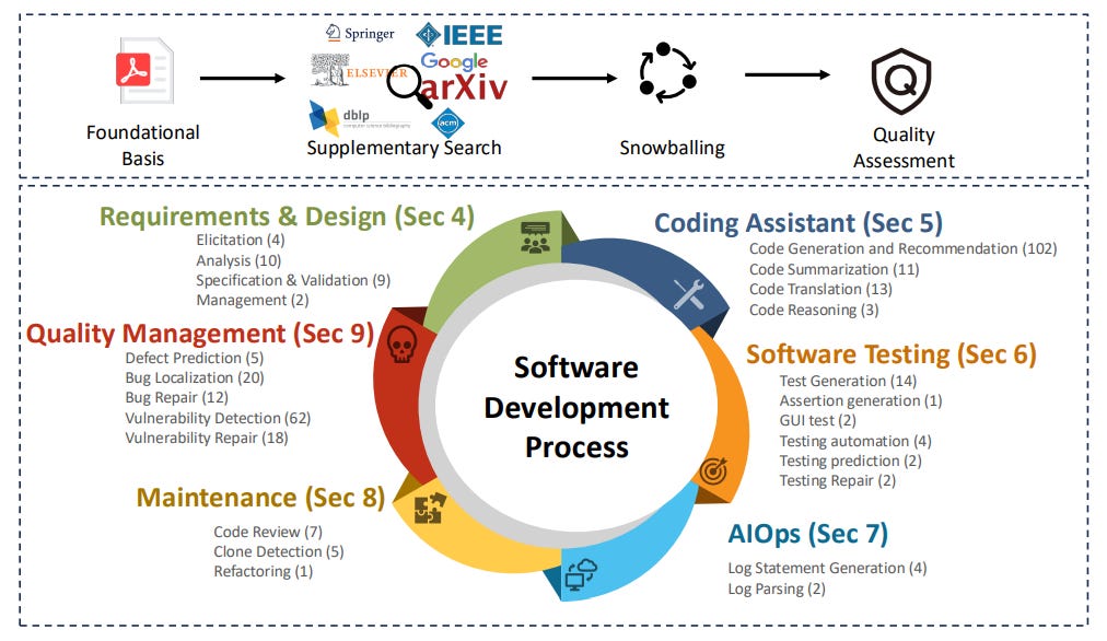 A new paper reviews the effectiveness of large language models (LLMs) in software engineering, focusing on their application across tasks such as code generation, software maintenance, and quality assurance. The study provides a detailed analysis of 291 benchmarks used to evaluate LLM performance in these domains, highlighting both their current limitations and the models’ varied successes. By delving into the construction and future potential of these benchmarks, the research aims to guide the development of more robust evaluation methods for LLMs within the field of software engineering.