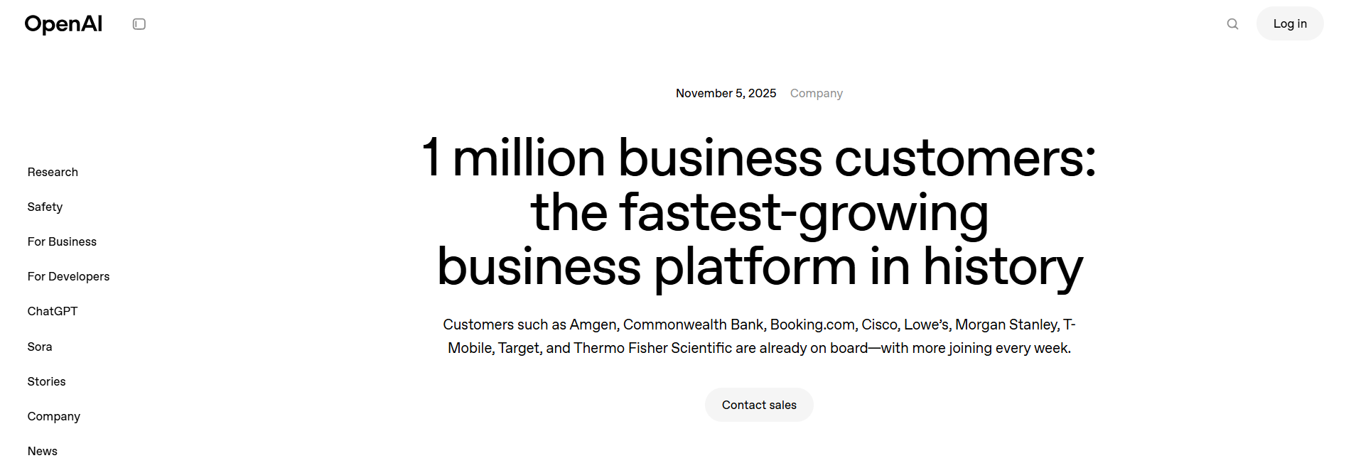 OpenAI’s Business Platform Surpasses 1 Million Customers, Sets Growth Record