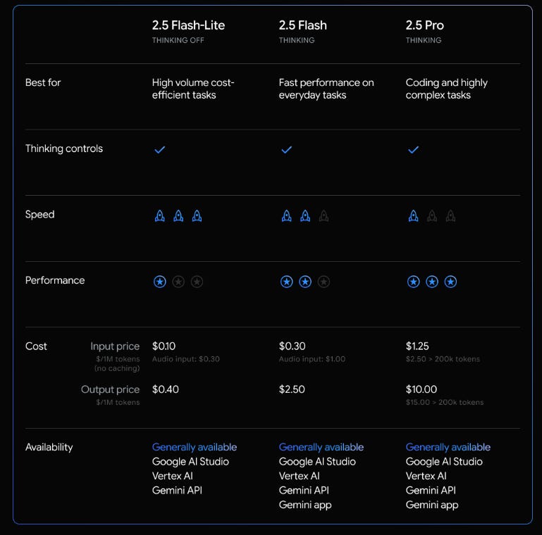 • Pricing of the Gemini 2.5 Flash-Lite stands at $0.10 per one million input tokens and $0.40 per one million output tokens, with audio input prices reduced by 40% since preview