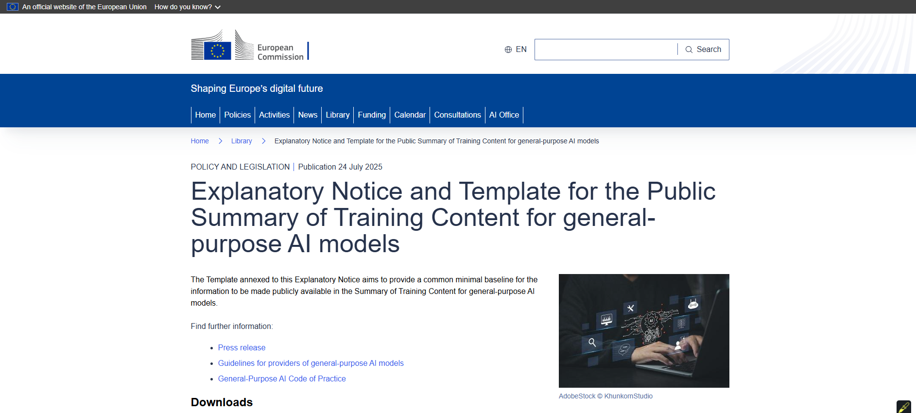 • A new template for general-purpose AI (GPAI) providers aims to enhance transparency by aligning with the AI Act and offering a publicly available summary of data used in AI training