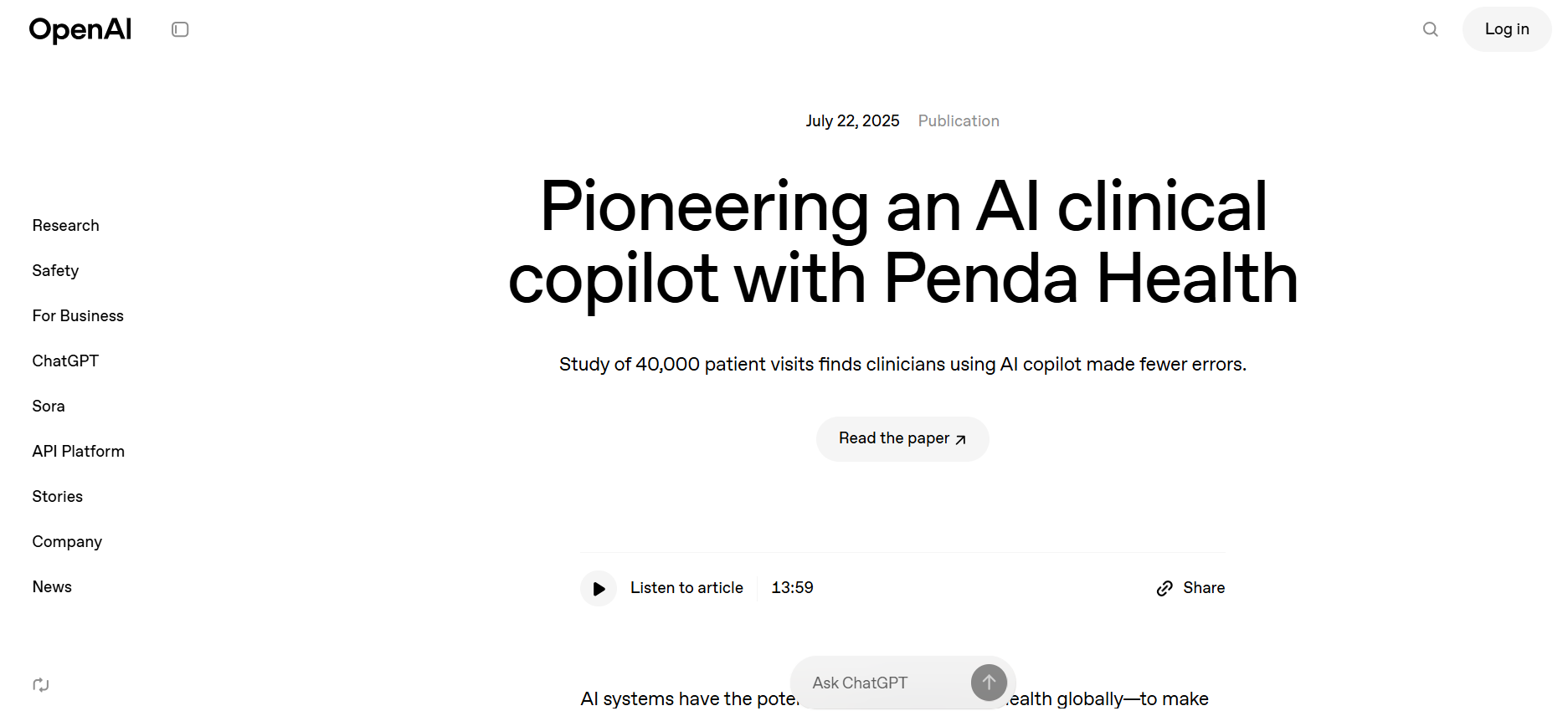 • OpenAI and Penda Health unveiled a study where an AI clinical copilot reduced diagnostic errors by 16% and treatment errors by 13% across 39,849 patient visits