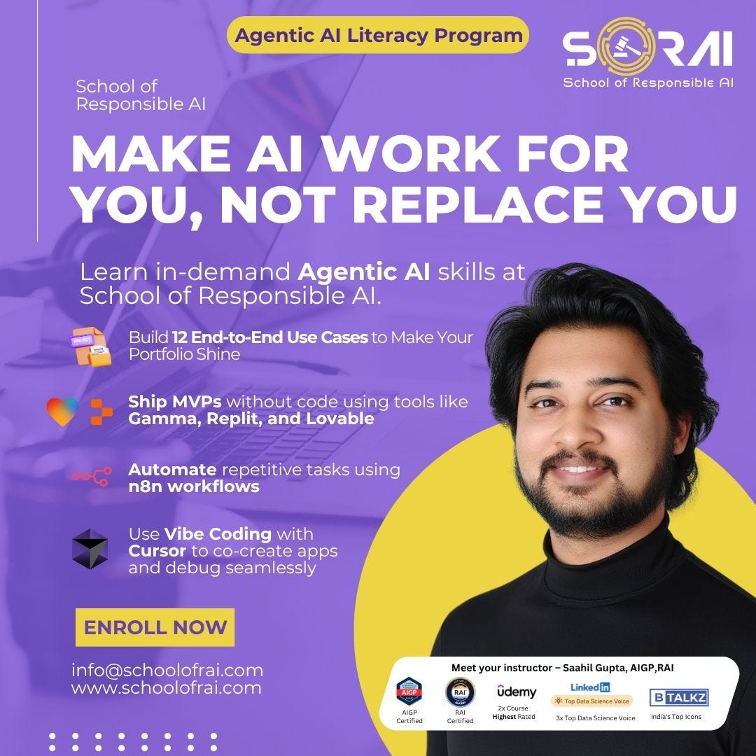 At the School of Responsible AI (SoRAI), we empower individuals and organizations to become AI-literate through comprehensive, practical, and engaging programs. For individuals, we offer specialized training such as AI Governance certifications (AIGP, RAI) and an immersive AI Literacy Specialization. This specialization teaches AI using a scientific framework structured around four levels of cognitive skills and gives you a hands-on path from basic concepts to actual deployment through 12 end-to-end use cases across traditional, generative and agentic ai. Alongwith building your own foundational AI portfolio, you'll also learn how to: