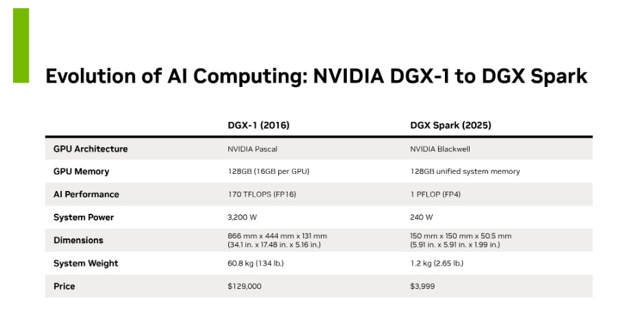 NVIDIA has begun shipping DGX Spark, the world’s smallest AI supercomputer, which integrates NVIDIA’s AI stack into a compact desktop form factor. Built on the NVIDIA Grace Blackwell architecture, DGX Spark offers developers a petaflop of AI performance and 128GB of unified memory, enabling local AI model inference and fine-tuning. To celebrate the launch, NVIDIA’s CEO delivered a unit to Elon Musk at SpaceX, a nod to the earlier delivery of a DGX-1 to OpenAI in 2016. Major tech companies and research organizations are among the early recipients, utilizing DGX Spark for evaluating and optimizing AI tools and models.