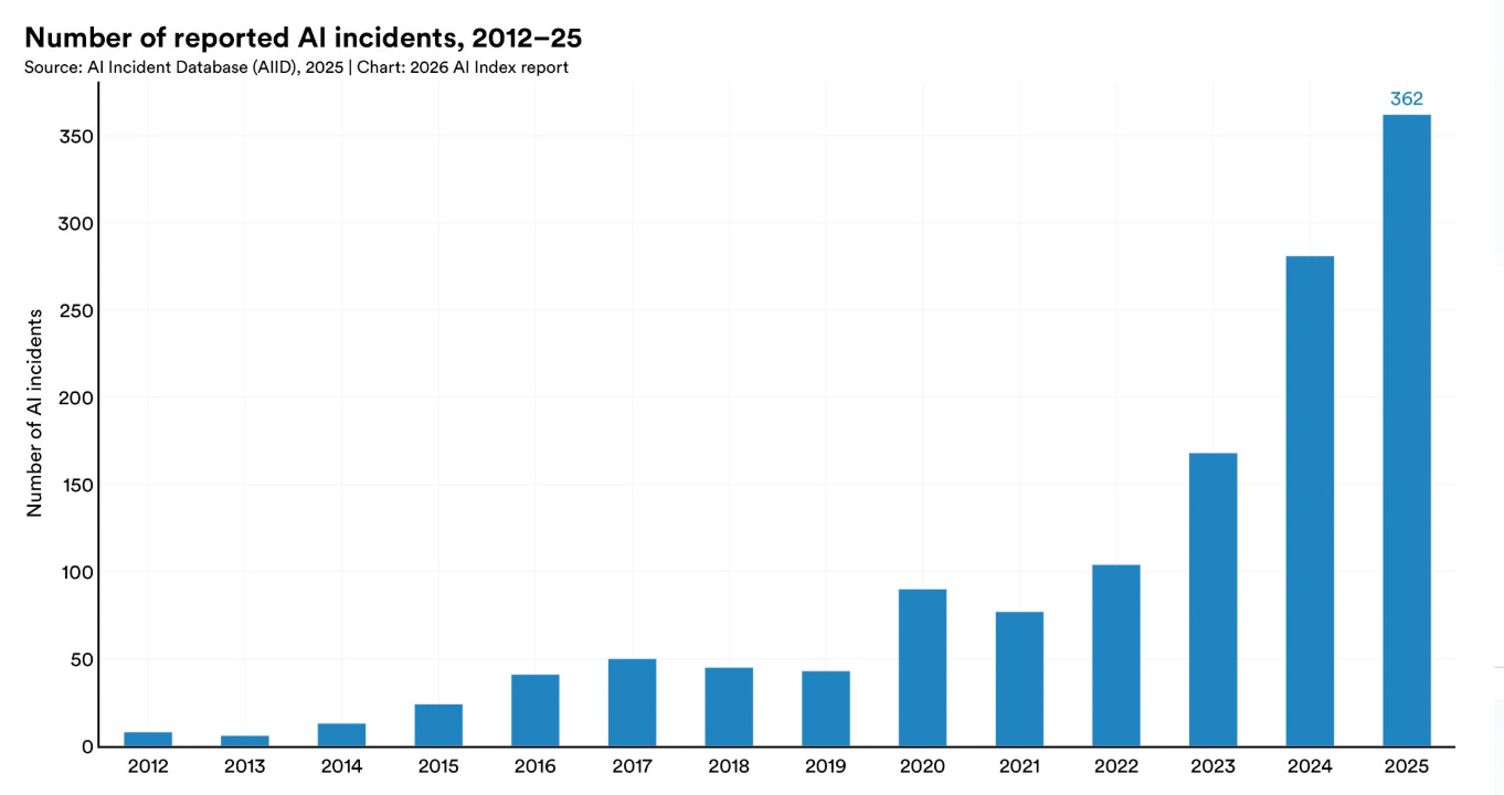 Responsible AI is not keeping pace with AI capability, with safety benchmarks lagging and incidents rising sharply.